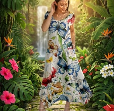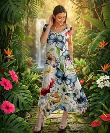 Lily by Firmiana Women's Cap Sleeve Fishtail Maxi Dress Blue & White Floral Abstract
